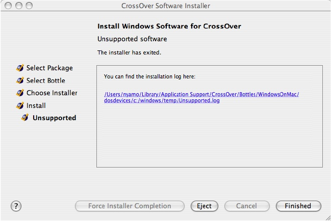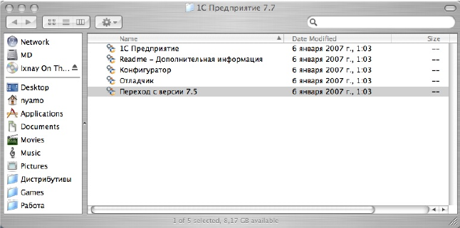 После этого установшик перезагрузкит нашу эмуляцию и создаст ярлыки для 1С:Предприятие 7.7 в меню CrossOver. Закройте окно установщика «CrossOver Software Installer» нажатием кнопки «Finished».