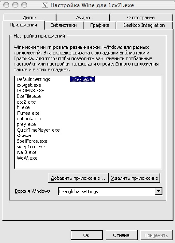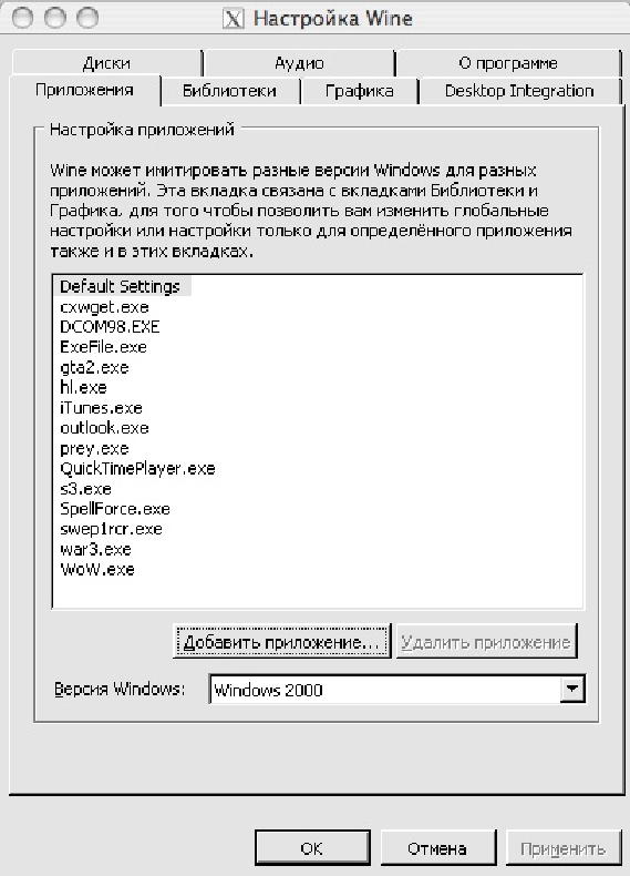В появившемся окне «Настройка Wine» нажмите на кнопку «Добавить приложение…»
