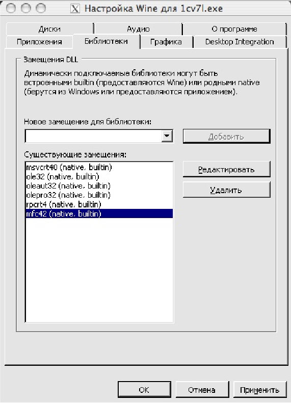 Зайдите на закладку «Библиотеки» и последовательно вводя в поле «Новое замещение для библиотеки» и нажимая на кнопку «Добавить» заполните список значениями «rpcrt4, ole32, olepro32 oleaut32, msvcrt40, mfc42». После завершения ввода нажмите на кнопку «ОК».