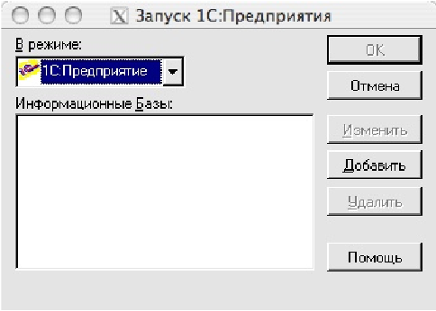 Мы увидим окно выбора информационной базы 1С:Предприятие 7.7 (возможно оно откроется в течении некоторого времени)