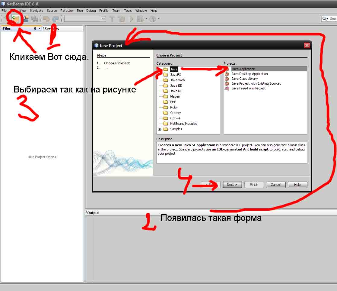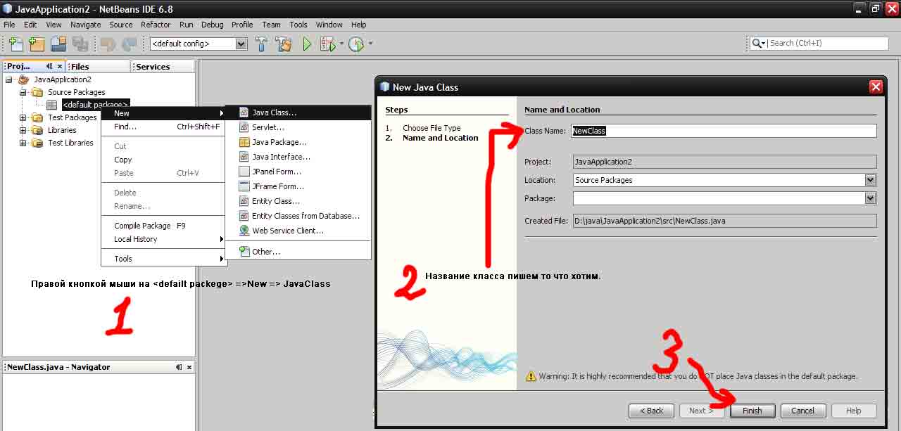 Для начала (Для удобства) код пишем в НетБинсе (так как можно стразу исправить все ошибки).